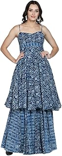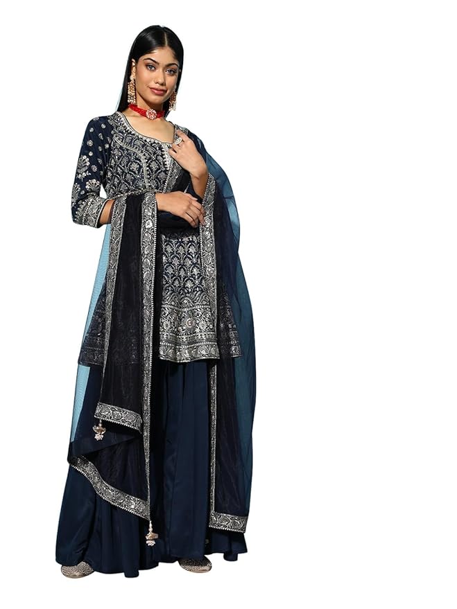 Stylish Indigo Double Layered Anarkali Skirt Set for Women