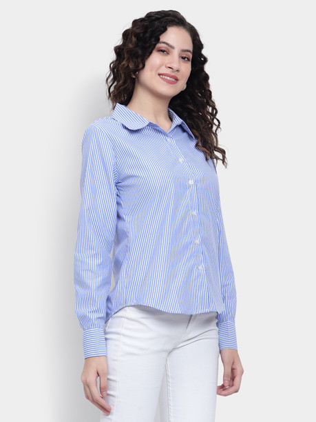 Women Regular Fit Striped Spread Collar Casual Shirt