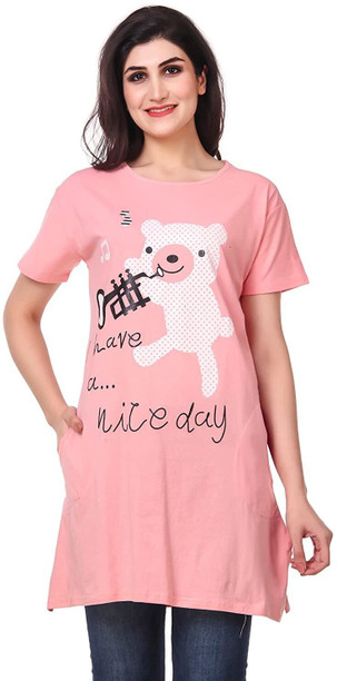 Women Printed Round Neck Cotton Blend Pink T-Shirt