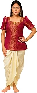Shree Radha Ethnic Indian Wear Women's Maroon Banarasi Brocade Top with Cream Dhoti Set