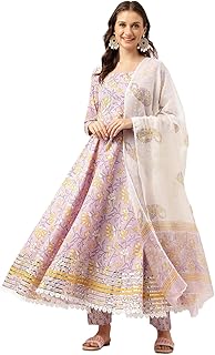 Women Cotton Anarkali Kurta Churidar Suit Set