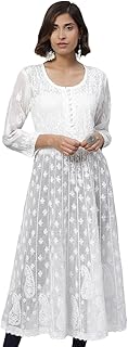 Women's Georgette Regular Fit Casual Hand Embroidered Lucknow Chikan Ethnic Angarkha Kurti with Slip A100430