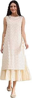 Hand Embroidered Lucknowi Chikankari Kota Doria Flared Anarkali A-Line Kurta Kurti for Women A411120 White