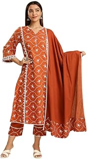 Noora Cotton Satin Ethnic Kurta Set with Straight Pants and Dupatta for Women