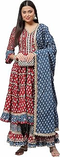 Maroon & Blue Anarkali Kurta Sharara Set with Dupatta