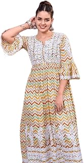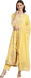 SHOWOFF Women's Calf Length Ethnic Motifs Round Neck Yellow Anarkali Kurta Set-GW-3368_Yellow