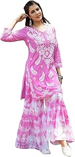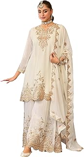 Womens Embroidered Georgette Straight Kurta With Palazzos