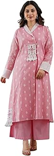 Women's Floral Pink Kaftan Kurta with Palazzo-DW-0189_Pink