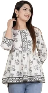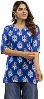 Indigo Consignor Women's Floral Print 100% Cotton Short Kurti Top