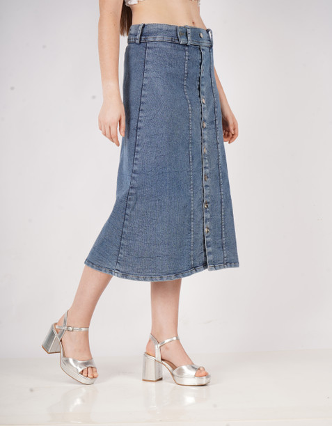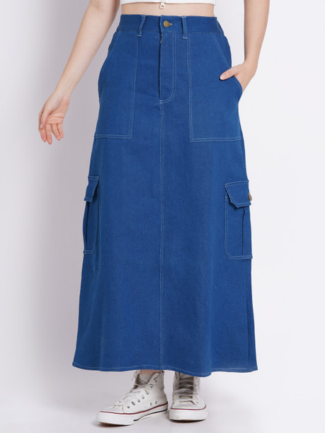 Women Solid Straight Blue Skirt