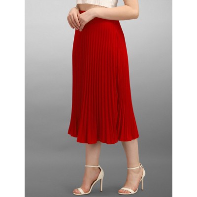 Women Solid Flared Red Skirt