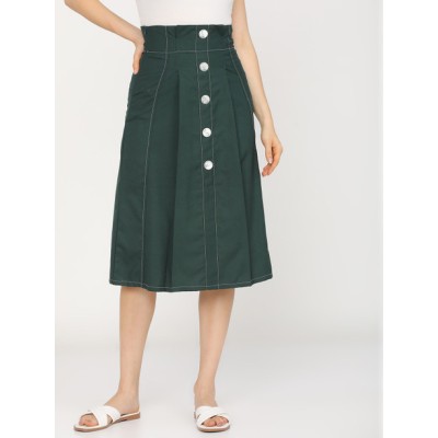 Women Solid A-line Green Skirt