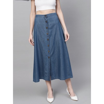 Women Solid A-line Blue Skirt