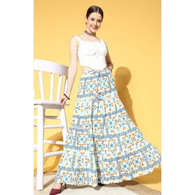 Women Printed Flared White Skirt