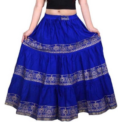 Women Printed Flared Blue Skirt