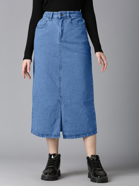 Women Solid Pencil Light Blue Skirt
