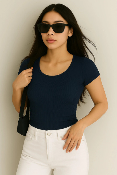 Casual Regular Sleeves Solid Women Dark Blue Top