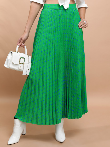 Women Printed Flared Green Skirt