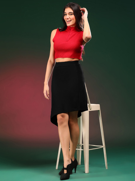 Women Solid Pencil Black Skirt