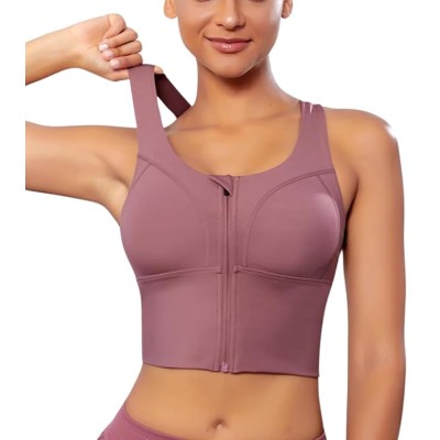 Women Polyester Spandex High Impact Front Zip Sports Bra Yoga & Workout