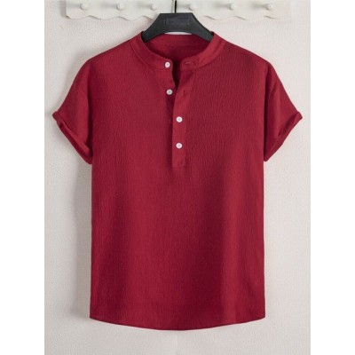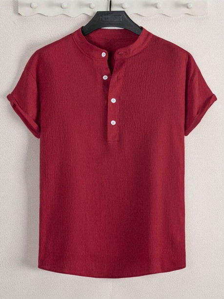Men Regular Fit Solid Mandarin Collar Casual Shirt