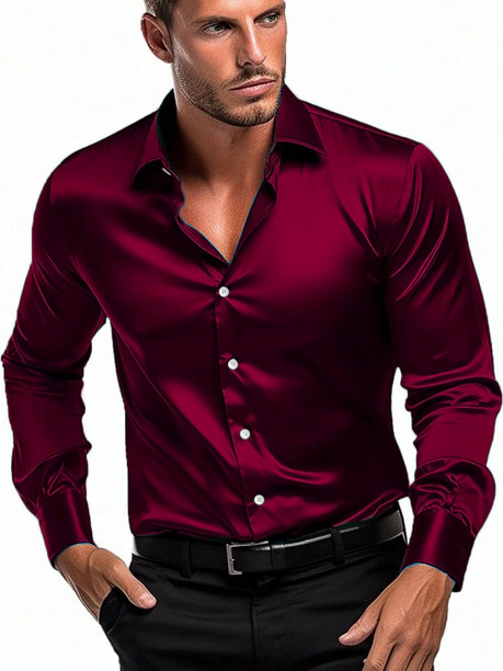 Men Regular Fit Solid Spread Collar Casual Shirt