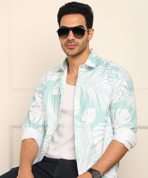 Men Slim Fit Printed Spread Collar Casual Shirt