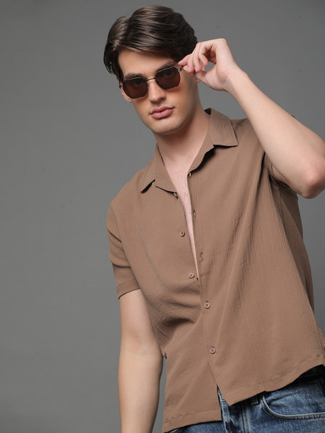 Popcorn Men Regular Fit Solid Lapel Collar Casual Shirt
