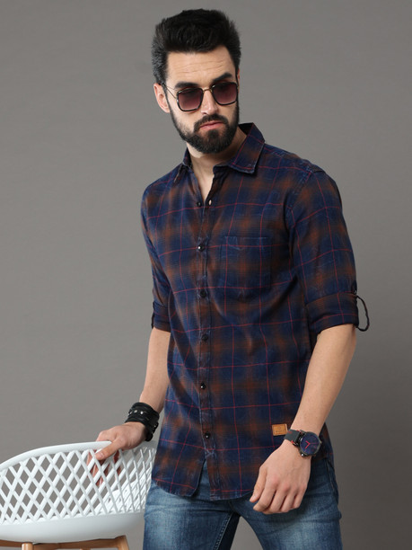 Men Regular Fit Checkered Slim Collar Casual Shirt