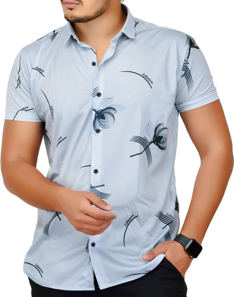 Men Slim Fit Printed Spread Collar Casual Shirt