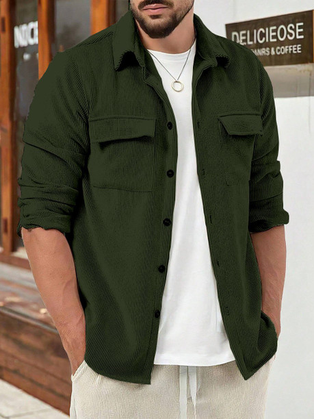 Men Regular Fit Solid Spread Collar Casual Shirt