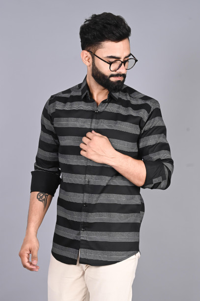 Men Regular Fit Striped Button Down Collar Casual Shirt