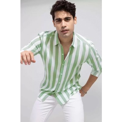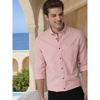 Men Slim Fit Striped Spread Collar Casual Shirt