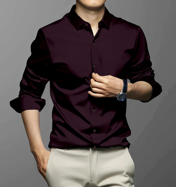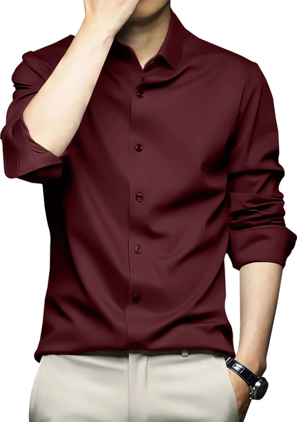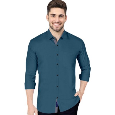 Men Regular Fit Solid Spread Collar Casual Shirt