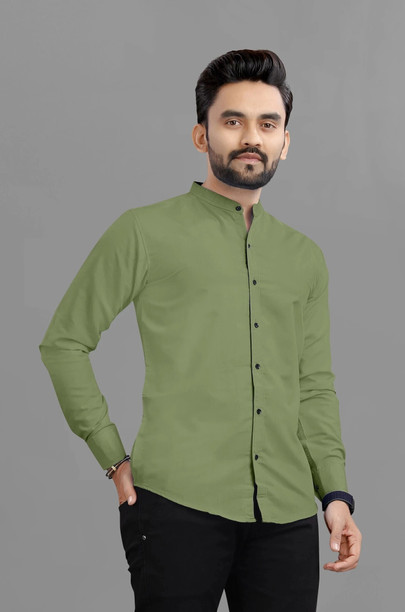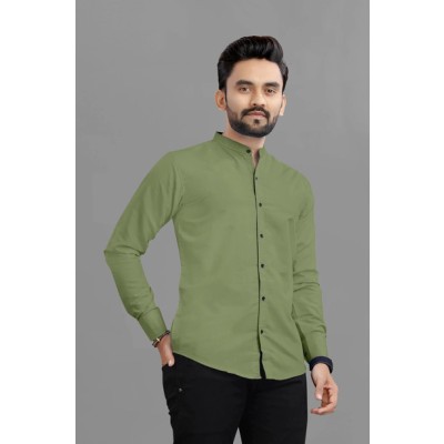 Men Slim Fit Solid Mandarin Collar Casual Shirt