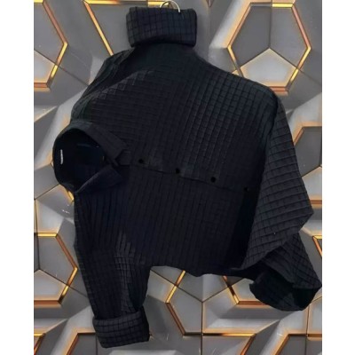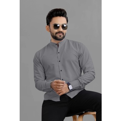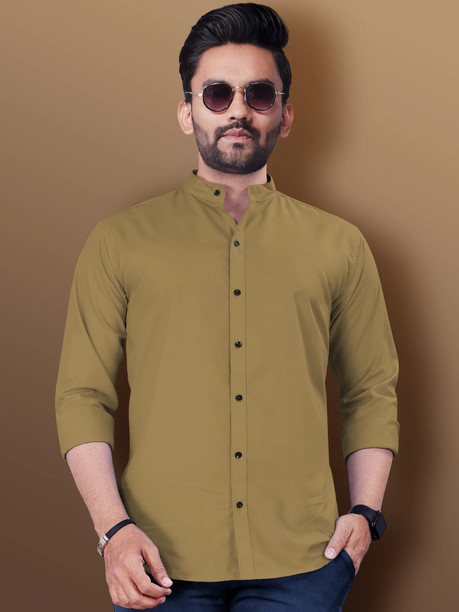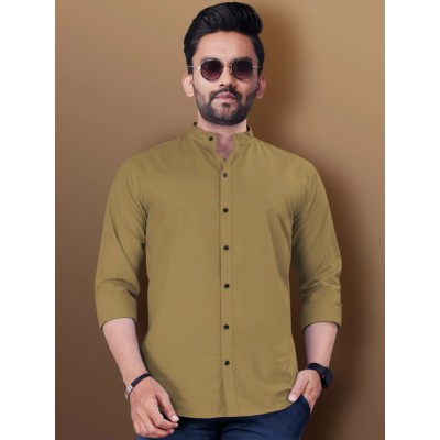 Men Regular Fit Solid Mandarin Collar Casual Shirt