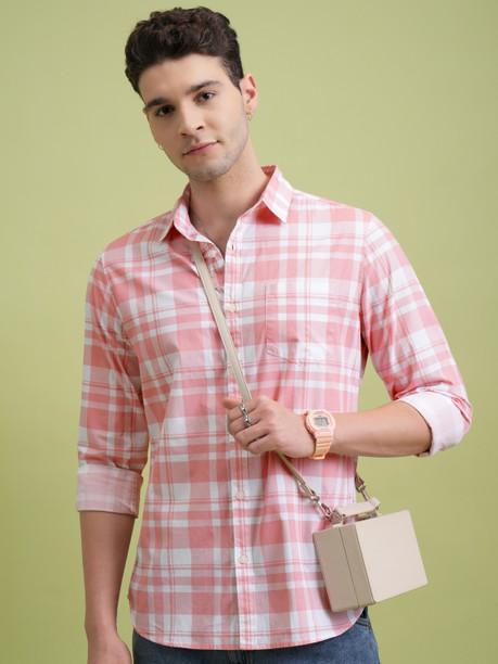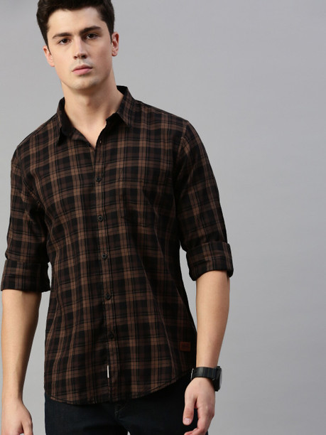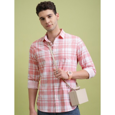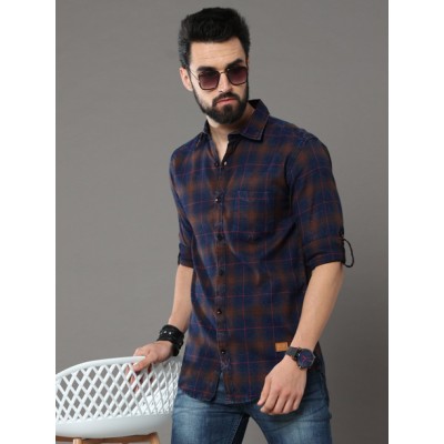 Men Regular Fit Checkered Slim Collar Casual Shirt