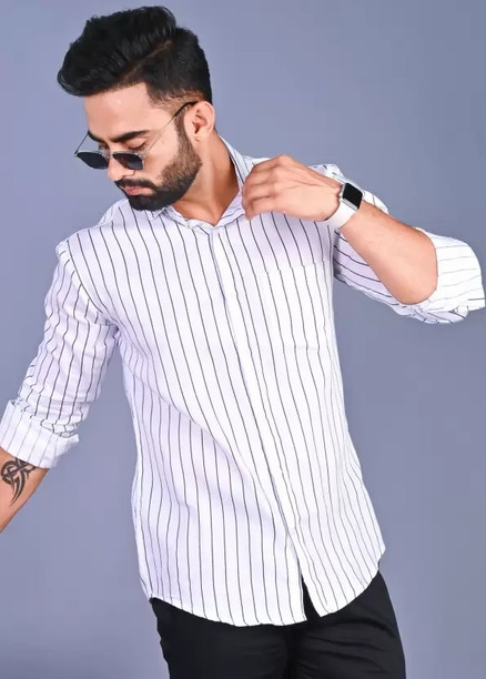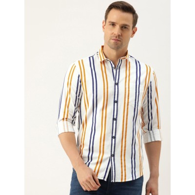 Men Slim Fit Striped Spread Collar Casual Shirt
