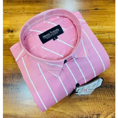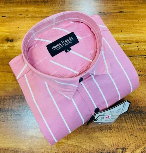 Men Regular Fit Striped Curved Collar Casual Shirt