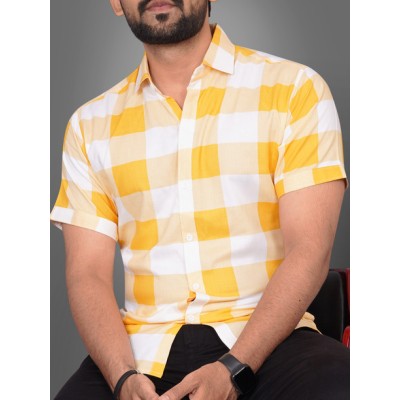 Men Regular Fit Checkered Spread Collar Casual Shirt