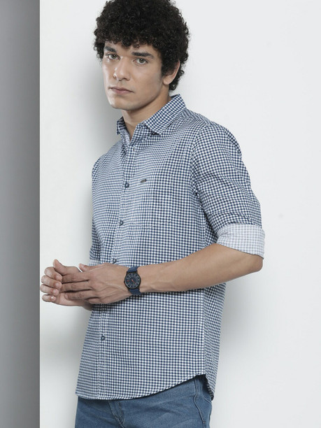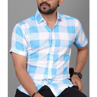 Men Slim Fit Checkered Spread Collar Casual Shirt