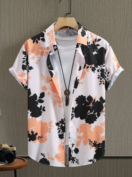 Men Slim Fit Printed Spread Collar Casual Shirt
