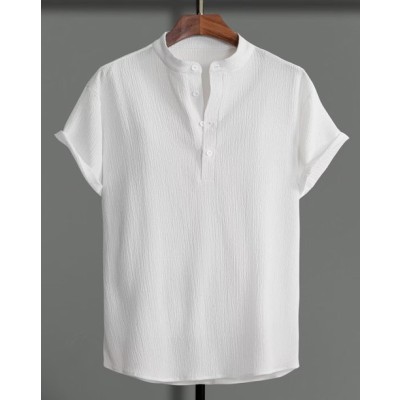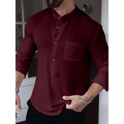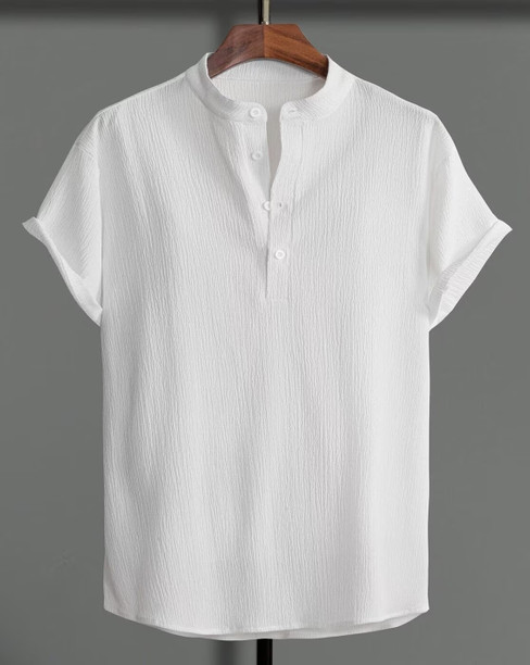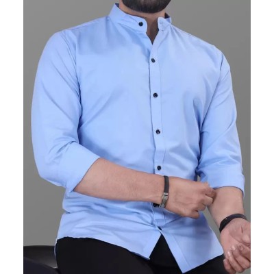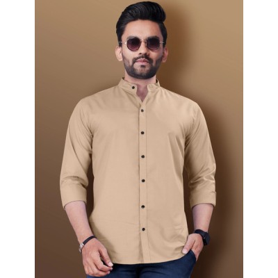 Men Regular Fit Solid Mandarin Collar Casual Shirt