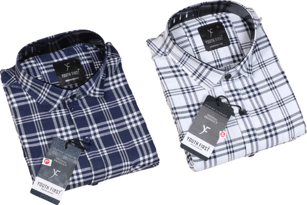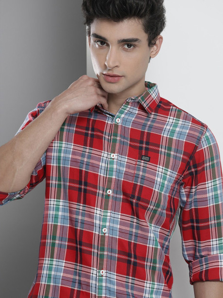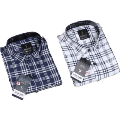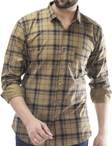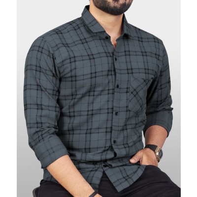 Men Regular Fit Checkered Spread Collar Casual Shirt