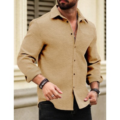 Men Regular Fit Self Design Lapel Collar Casual Shirt