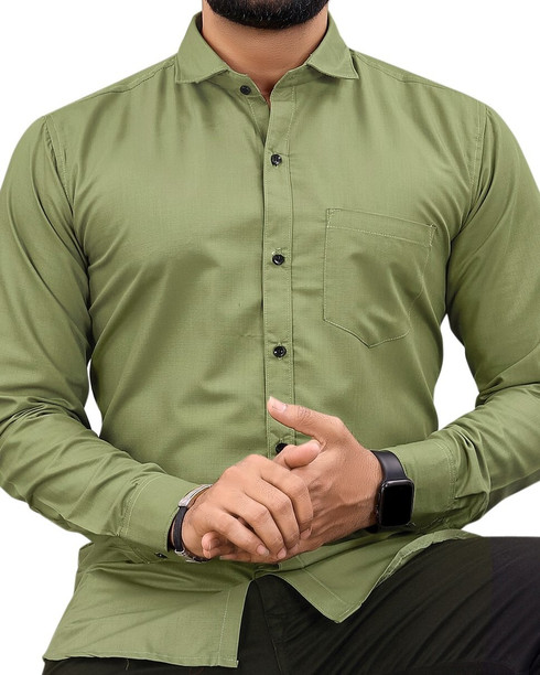 Men Regular Fit Solid Button Down Collar Formal Shirt
