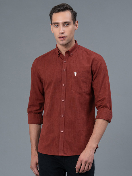 Men Regular Fit Solid Button Down Collar Casual Shirt