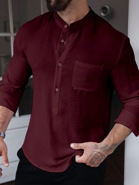 Men Slim Fit Solid Mandarin Collar Casual Shirt