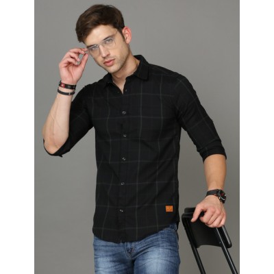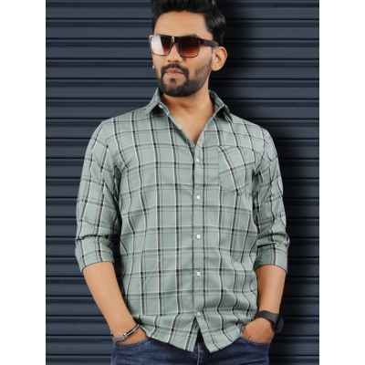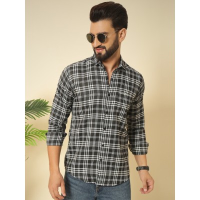 Men Regular Fit Checkered Slim Collar Casual Shirt