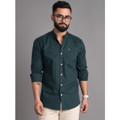 Men Slim Fit Solid Mandarin Collar Casual Shirt
